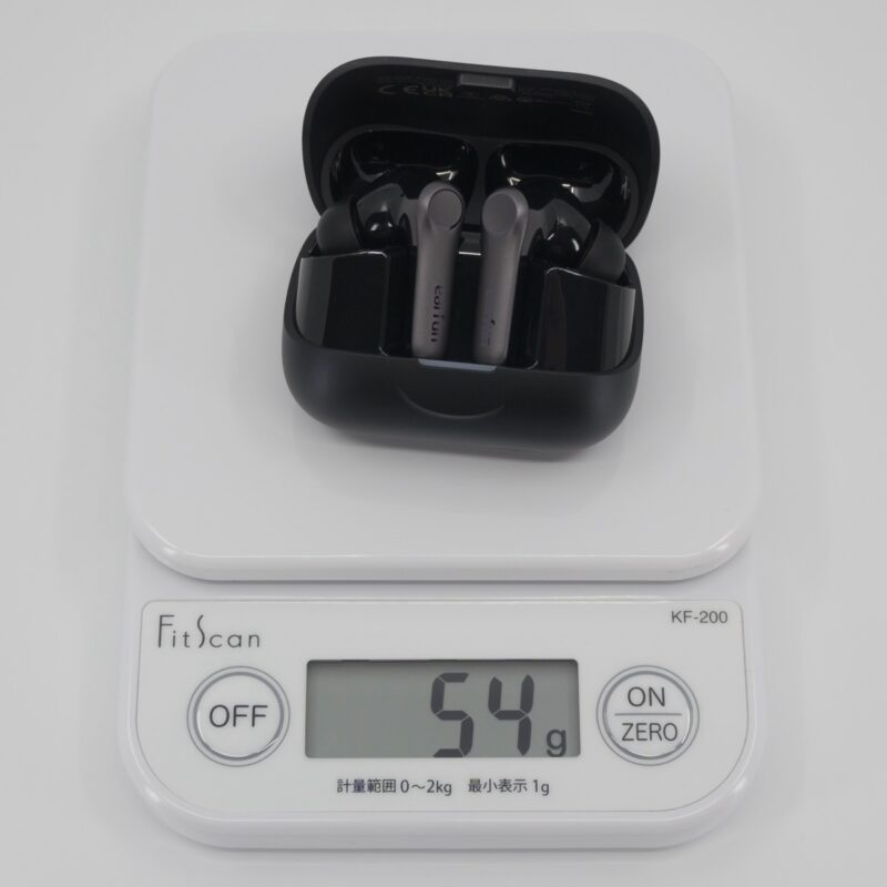 重量はケース込みで54g、イヤホン片側で5gとなっています。