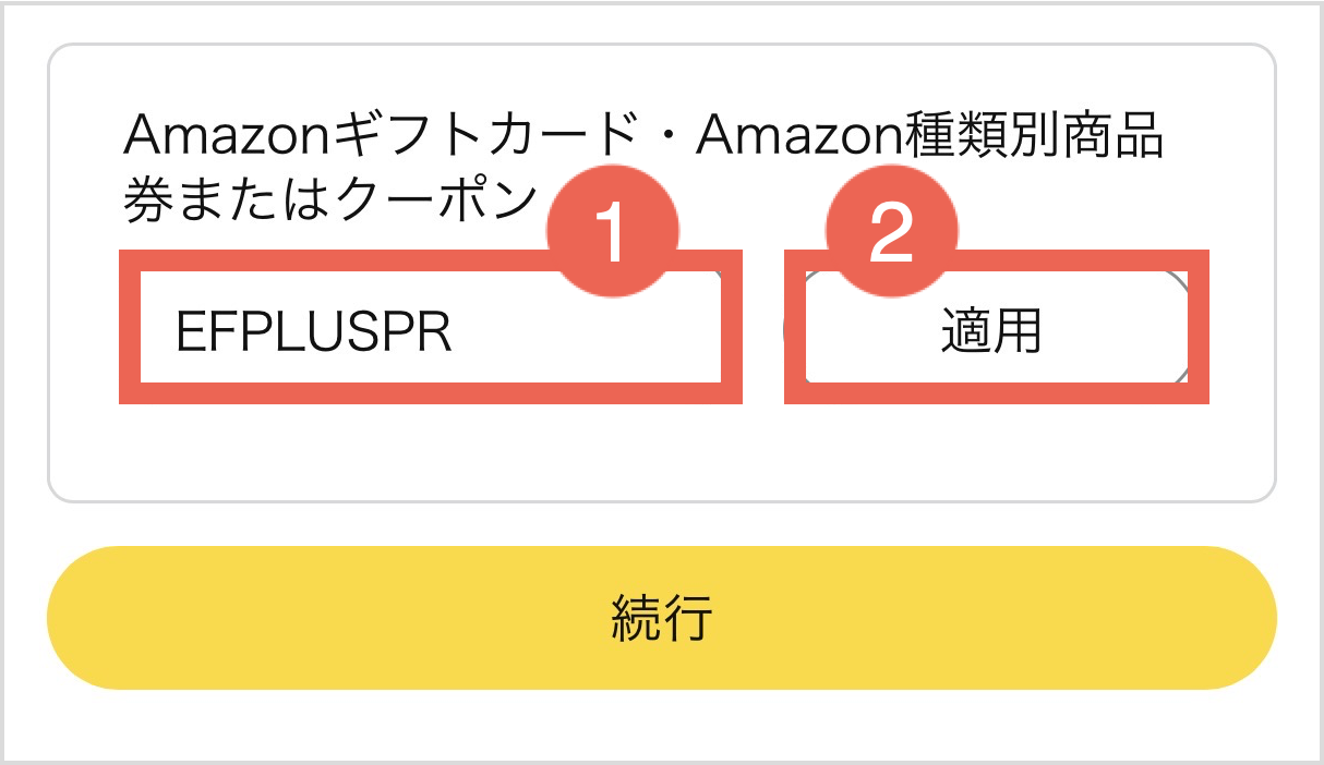 上記のクーポンコードを貼り付けて[適用]ボタンをタップ