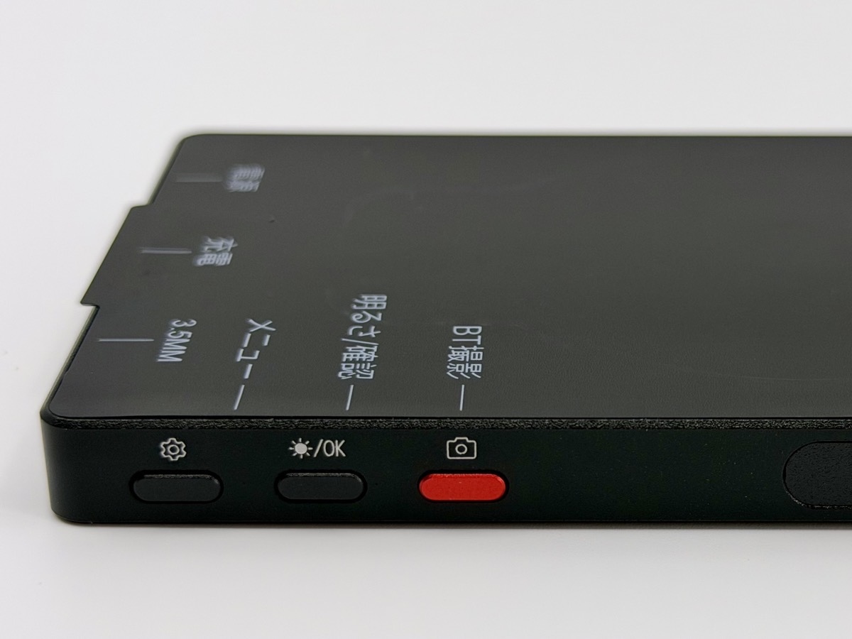 左から「メニュ表示」「明るさ調整 & 決定」「シャッター」とボタン類が並んでいます。