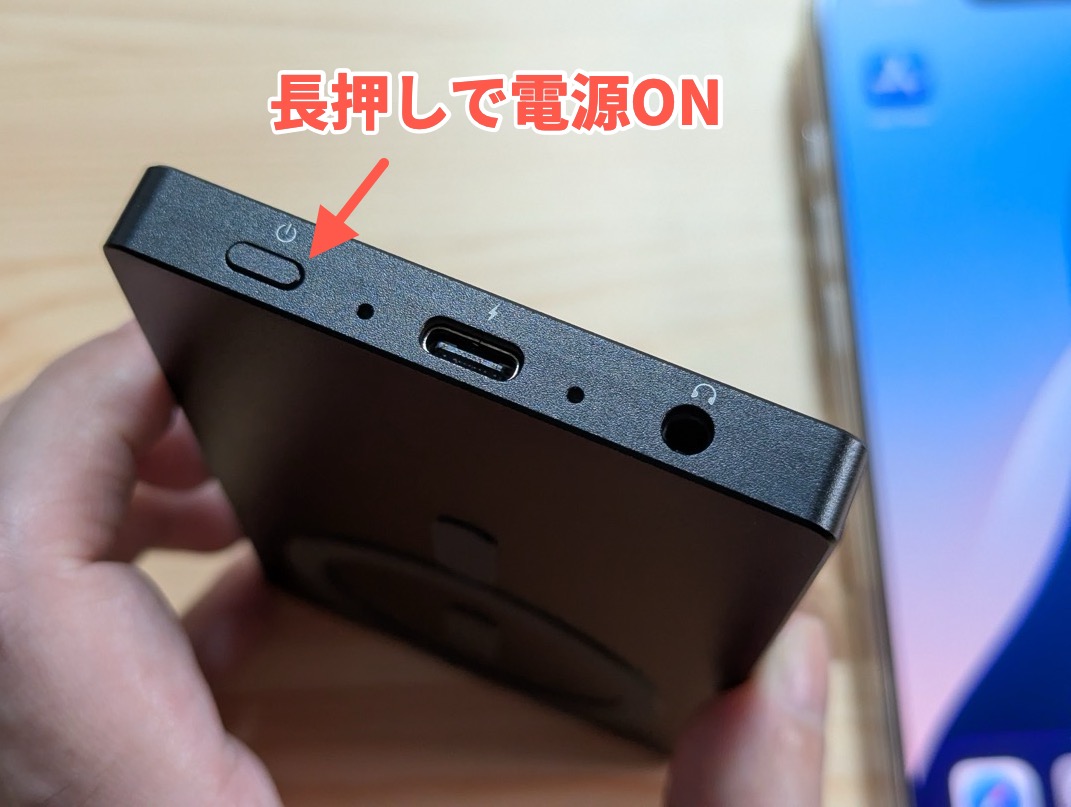 左から順に「電源ボタン」「Type-C ポート」「イヤホンジャック」