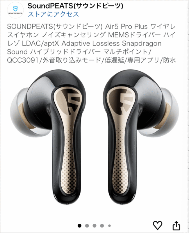 私の耳との相性が良くないなのか、付属のイヤーチップでは若干隙間ができてしまうようで、SOUNDPEATS Air5 Pro+の音質を正しく判断できていない可能性があります。他の方のレビューも確認してください。