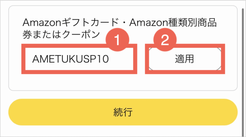 上記のクーポンコードを貼り付けて[適用]ボタンをタップ