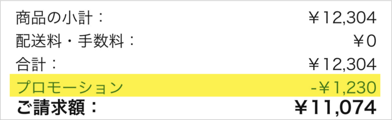 クーポンが適用されて割引額(10%OFFの価格)が表示されればOKです。